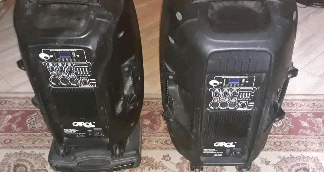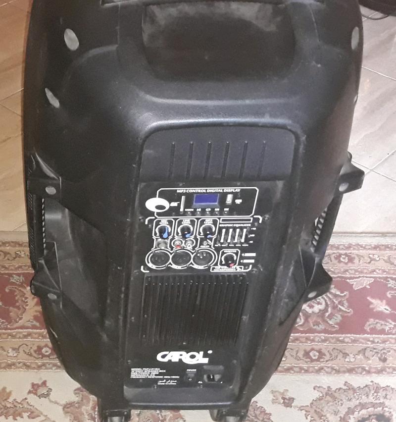عدد ٢ سماعه كارول باور بحاله ممتازه معاها مايك لاسلكي و بها مشغلusb و Bluetooth و input و مدخل ماسك بسلك . السماعاه ٢٧٥ وات