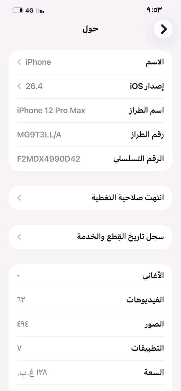 Iphone 12pro max ذاكره 128 جيجا حاله البطاريه %100 الجهاز مغير بطاريه و شاشه من انضف الحاجات وكل حاجه شغال تمام فيس اي دي تمام و الموبيل مفهوش مشاكل خالص ومتاح الكشف في اي مكان و الدهر في حته صغيره ج...