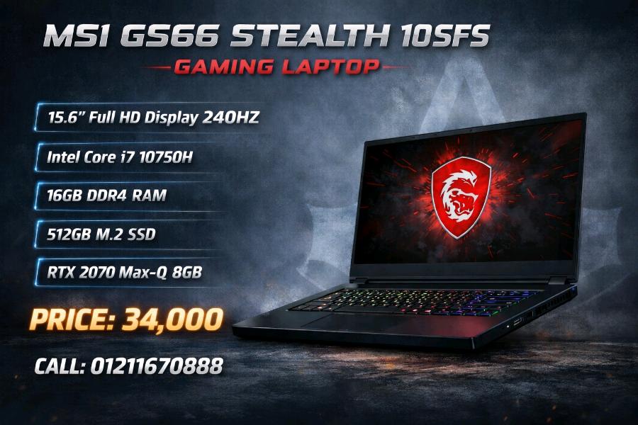 عرض جامد لعشاق الجيمنج MSI GS66 Stealth 10SFS Gaming Laptop المواصفات: شاشة 15.6 بوصة Full HD 240Hz معالج Intel Core i7 10750H رامات 16GB DDR4 هارد 512GB M.2 SSD كارت شاشة RTX 2070 Max-Q 8GB ...