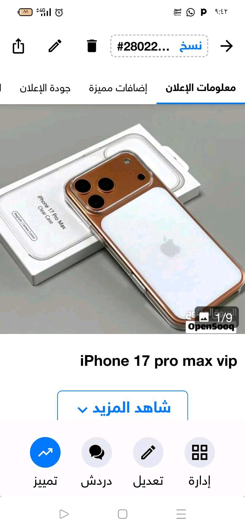 ايفون 17برو ماكس.. النسخه Vip فرز أول درجه بعد الأصلى مباشرة....