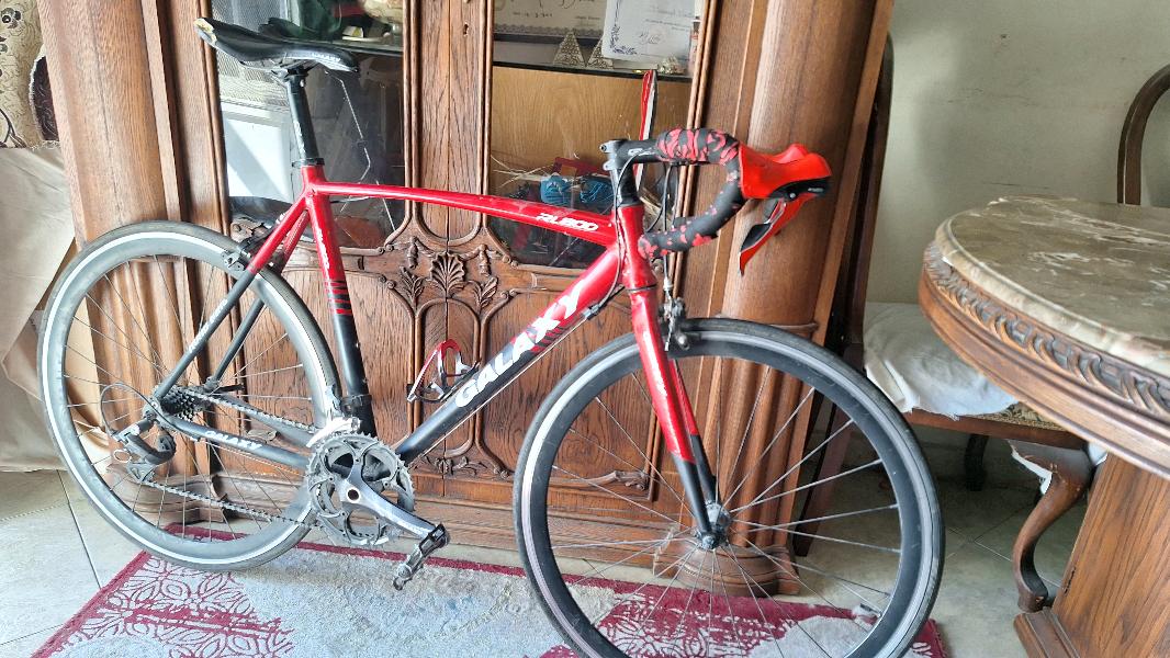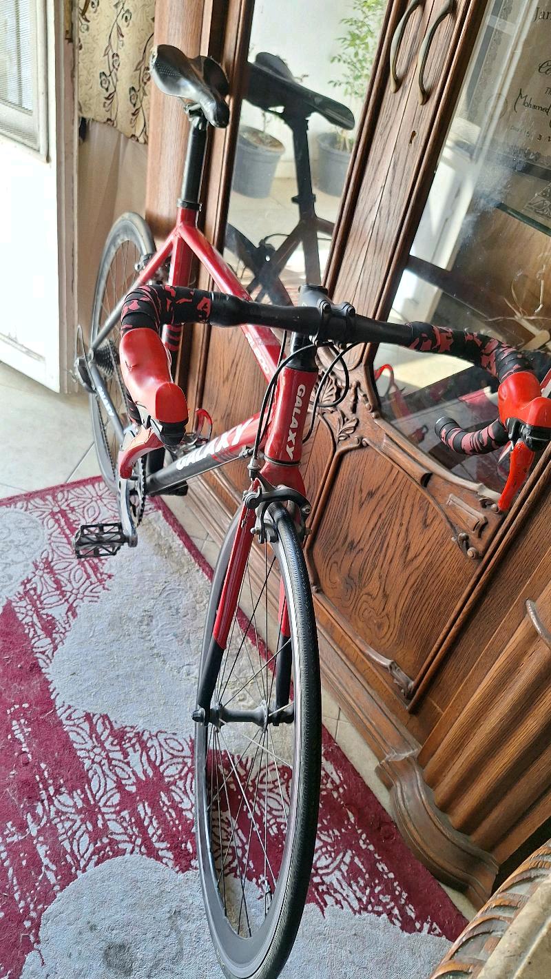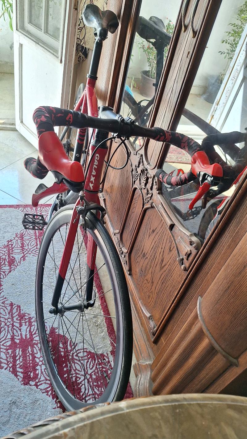 Galaxy rl800 فريم الامونيوم بالكامل مقاس ٥٦ مودل ٢١ جروب سيت شيمانو كلاريس ٨ تروس خلفي ٢ ترس امامي كرانك جالاكسي كاوتش امامي و خلفي ديليتاير لونها الاصلى اسود×احمر وملزوق عليها skin السعر 8000 التو...